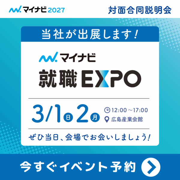 マイナビ「3月1日 就職EXPO 広島」に出展します!!
